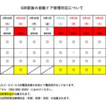 また、GW期間中の自動ドア修理対応は下記の通りになります。
